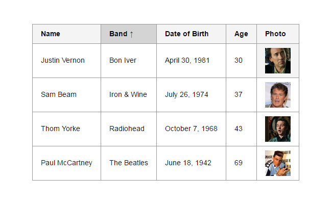 jQuery Table表格排序显示代码是一款支持分类排序,按数字大小排序,按英文排序等等。