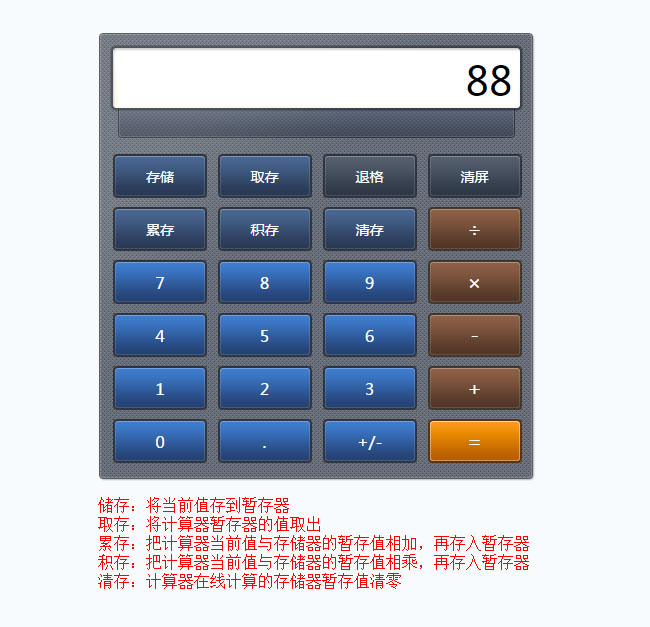 js加减乘除在线计算器代码是一款支持键盘输入和兼容IE8的计算器特效。