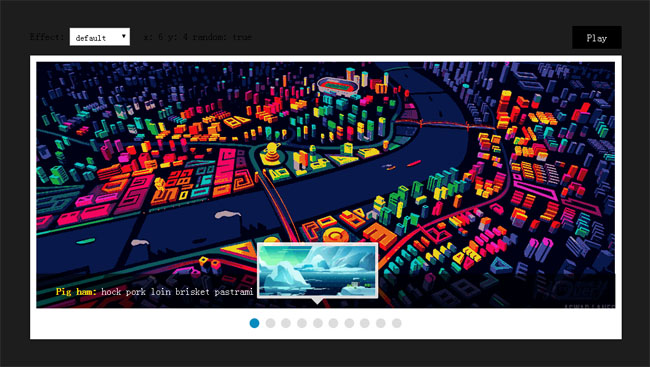 jQuery图片轮播插件多种切换效果是一款支持多达12种特效,22个自定义参数。