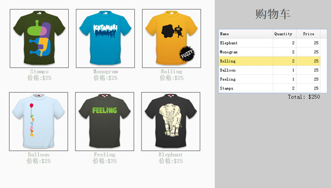 jQuery拖到商品添加购物车代码是一款拖动商品的图片放到右侧购物车里面特效。