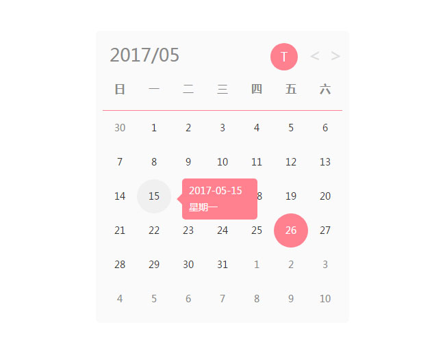 jQuery粉色带提示日期日历插件是一款红色的日历样式代码。