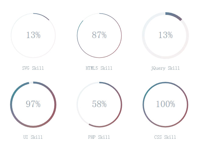 CSS3 SVG圆形进度条动画特效是一款CSS3技能进度条代码。