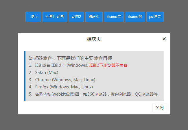 alert.js弹出层插件下载是一款基于jQuery开发的PC移动端都兼容的轻量级弹层组件。