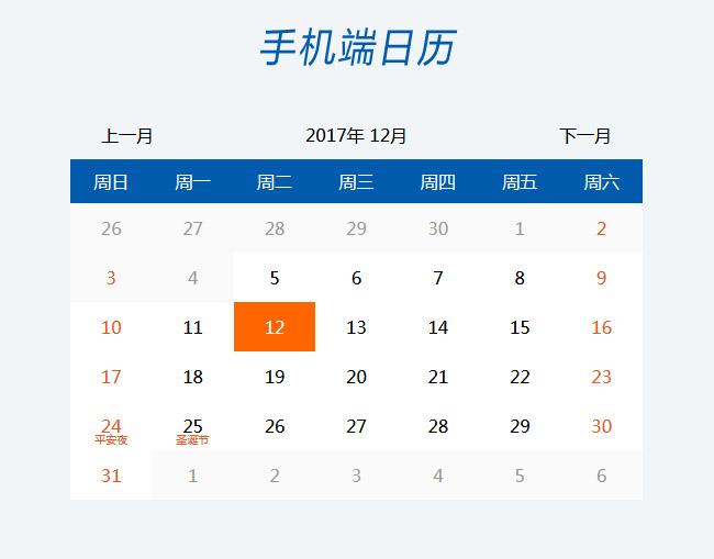 jQuery带节假日移动端日历代码是一款带有节假日,也可用于酒店,机票选择,可实现双选入住日期跟离店日期。