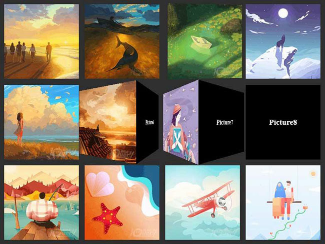 jQuery+CSS3悬停悬停翻转特效是一款网格列表图片悬停3D翻转动画效果代码。
