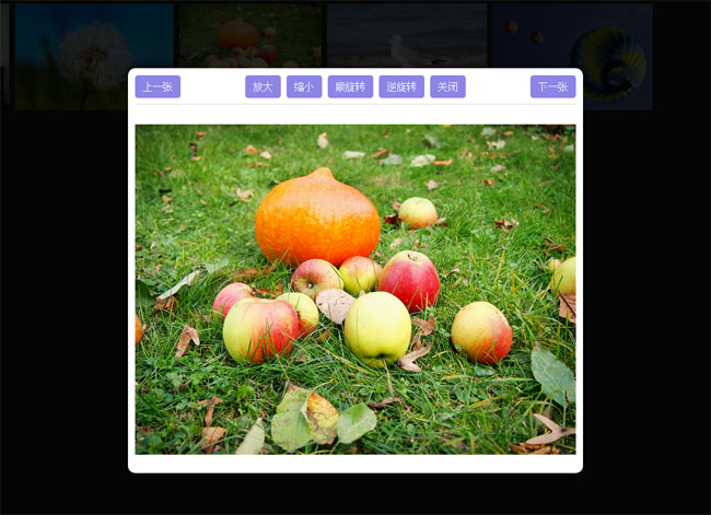 jQuery图片放大缩小旋转代码是一款弹出窗口图片插件,支持图片放大缩小旋转拖动上一张下一张切换查看效果。