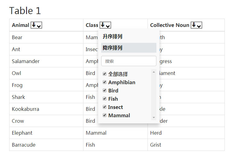 jQuery仿Excel表格排序筛选代码是一款支持输入框检索表格列表,选中取消列表筛选代码。