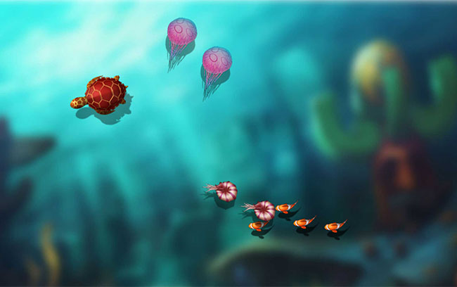 CSS3制作捕鱼达人游戏场景动画特效是一款CSS3卡通海底世界鱼动画场景特效。