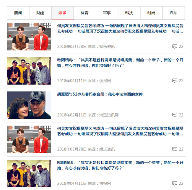 jQuery新闻分类TAB选项卡切换代码是一款页面滚动顶部固定的导航tab切换效果代码。