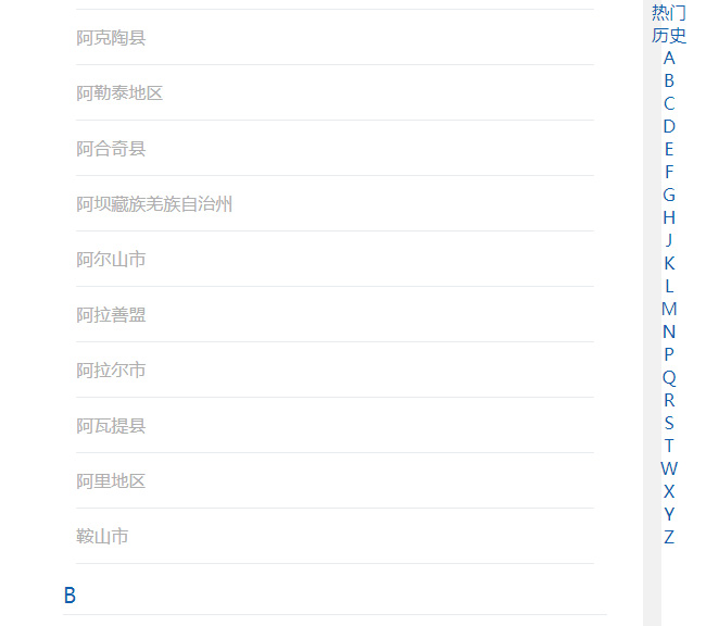 jQuery手机触屏首字母城市选择代码