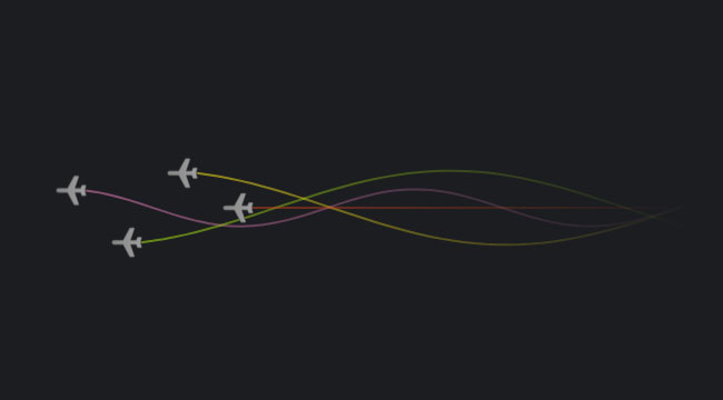 HTML5 Canvas飞机线条动画特效是一款适用于动态网页背景4架飞机弧度飞行特效。