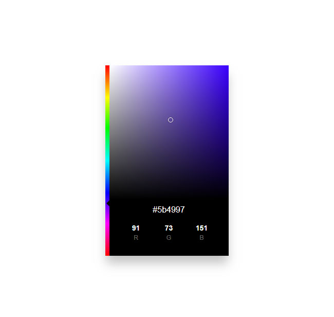 HTML5鼠标点击数值选取颜色代码是一款简单的颜色选择器,拖动设置色系选择颜色值代码。