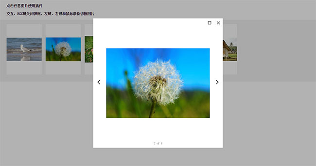 jQuery点击弹窗图片放大预览查看是一款图片查看插件,支持键盘左右按键,鼠标滚轮切换预览图片,最大化,最小化窗口预览代码。