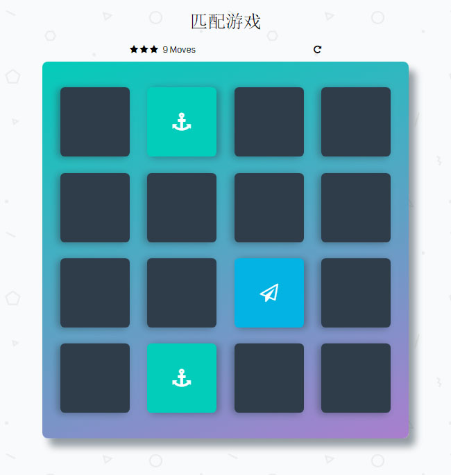 16宫格翻牌匹配HTML5游戏是一款16宫格的翻牌图标匹配游戏,翻开两个图标一样,进行匹配小游戏源码下载。