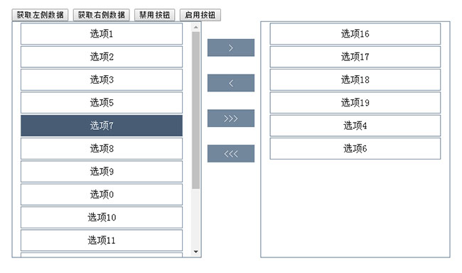 jQuery双列表左右选择框代码是一款点击选中列表中间按钮操作左右移动效果代码。