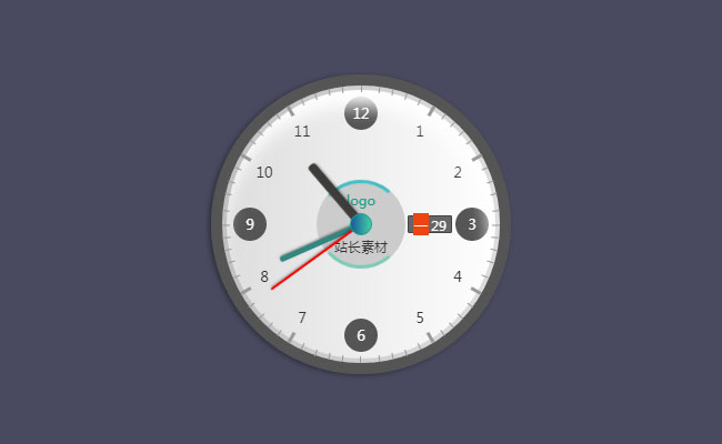 jQuery带日期跟星期时钟代码是一款jQuery基于CSS3属性制作精美圆形时钟,带当前日期显示,中间还可以自定义设置时钟logo等功能。