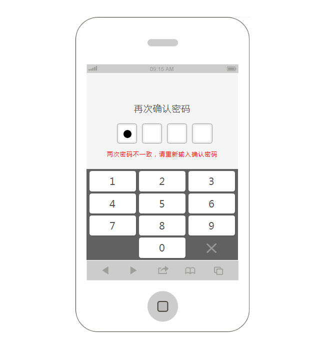 jQuery仿手机解锁密码验证代码是一款适用于解锁报表页面。触屏输入4位密码,两次密码不一致,请重新输入确认密码验证代码。