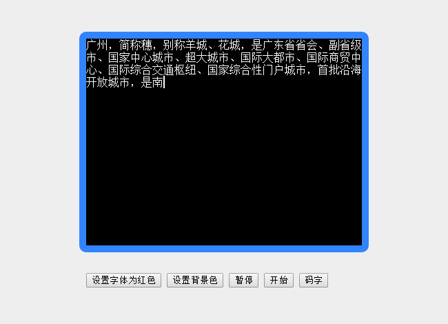 jQuery模拟键盘输入文字效果特效是一款仿键盘打字输入动画效果,支持设置字体为红色、设置背景色,暂停,开始,码字,退格功能。