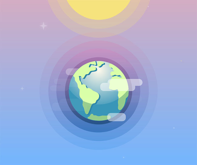 GSAP动画绘制卡通地球特效是一款使用GSAP动画绘制卡通地球太阳月球和星星制作地球白天和夜晚动画场景特效。