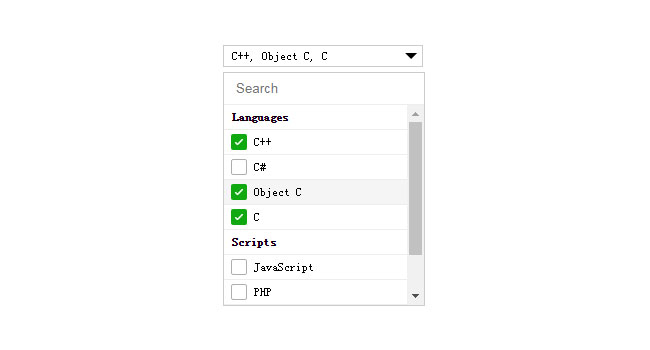 jQuery自定义下拉分类多选代码是一款基于jQuery Select制作的下拉框插件自定义下拉分类菜单,多选分类搜索功能代码。