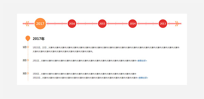 jQuery企业发展大事件时间轴代码是一款企业发展大事件时间轴,水平的年份导航时间轴,左右滚动切换代码。