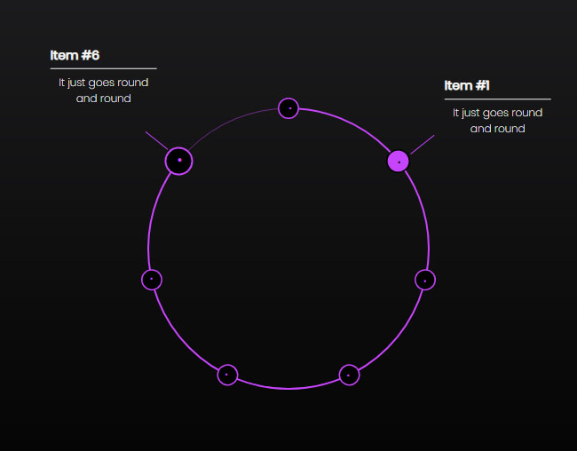 HTML5 SVG圆形文字菜单特效是一款通过SVG布局跟鼠标hover悬停事件制的作菜单项的动画效果。