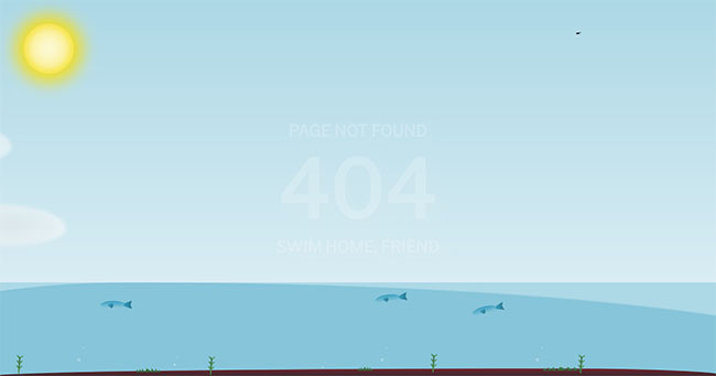 纯CSS3海水404页面动画特效是一款css3 animation属性制作阳光下的海面上游动的鱼主题404页面动画特效。