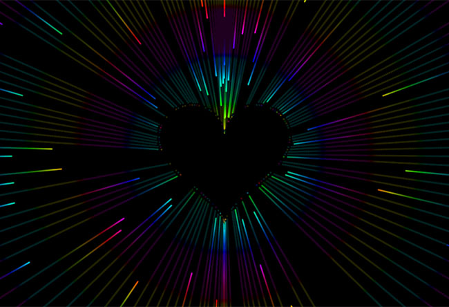 HTML5线条照射爱心动画特效是一款基于canvas绘制五颜六色线条合成一个爱心发光动画特效。