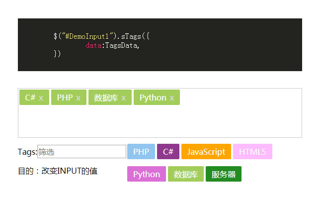 jQuery标签添加筛选代码是一款jQuery标签插件制作input框输入文字筛选标签点击添加效果。