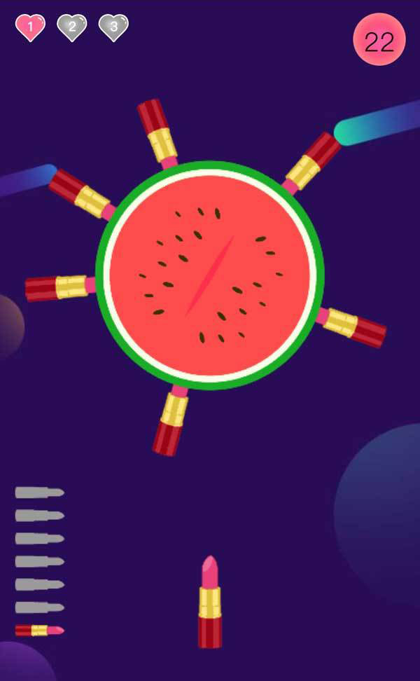 HTML5见缝插针手机游戏代码是一款口红西瓜见缝插针手机游戏源代码。