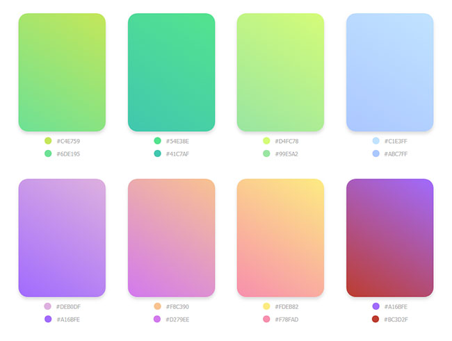 纯CSS3渐变色板配色代码是一款纯css3基于gradient属性制作15种色板,渐变颜色。带颜色参数,可自定义选择渐变配色代码。