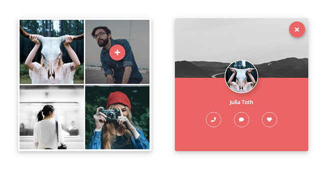 jQ+CSS3图片头像网格布局代码是一款通过悬停点击添加关注弹出头像信息的ui交互式效果。