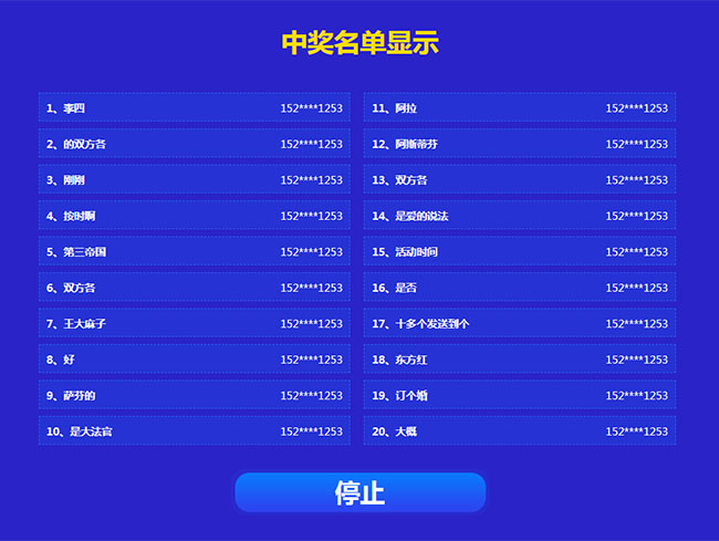 jQuery随机中奖名单抽奖代码