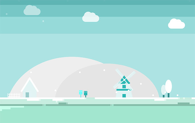 卡通冬季场景CSS3动画特效是一款卡通风格的冬季场景下雪,大风车,房屋,树木等元素动画特效。