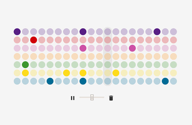 HTML5交互式音乐旋律设置代码是一款基于TweenMax制作音乐演奏曲谱。自定义圆点设置音乐旋律,然后点击开始音乐循环播放ui交互特效。