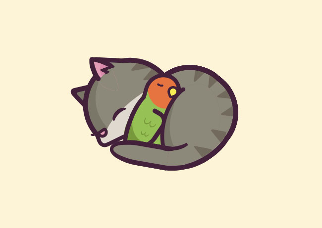 CSS3绘制睡觉的猫咪特效是一款纯css3 transform属性绘制卡通的正在睡觉的猫和鹦鹉图形特效。
