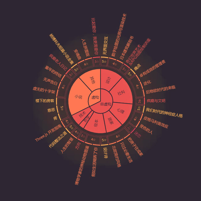 JS旭日图表标签分类统计代码是一款比较特别圆形图表统计代码,圆环图与树状图的合体。