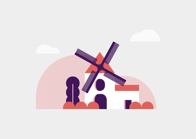 卡通风车白云CSS3特效是一款有风车,白云,树木,房屋等背景动画特效。