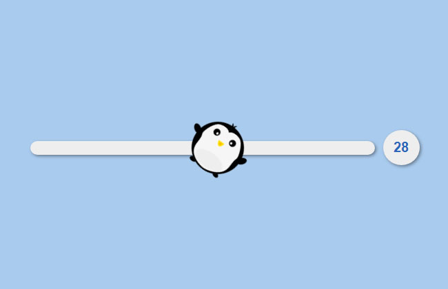 js滑块拖动企鹅翻滚特效是一款有趣的企鹅滚动范围滑块拖动选择数值,企鹅滑块拖动交互特效。