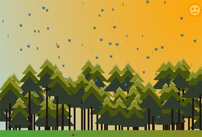 森林蝴蝶飞舞HTML5特效是一款森林中一群蝴蝶飞舞动画场景特效。