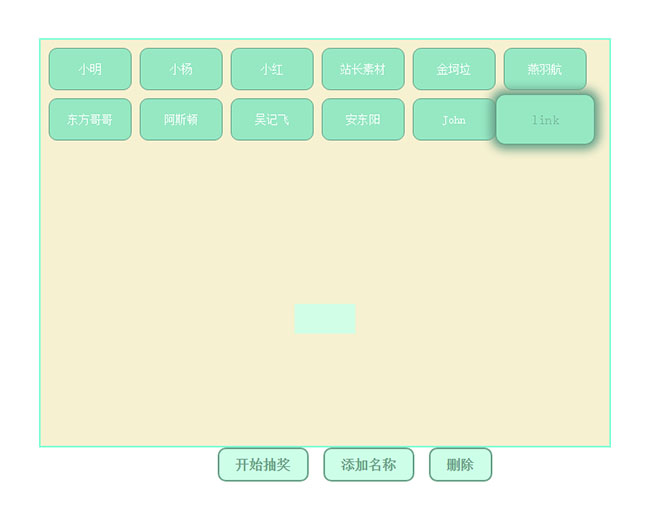 JS按名字随机抽奖代码是一款名字抽奖代码,支持手动添加或删除抽奖名字。