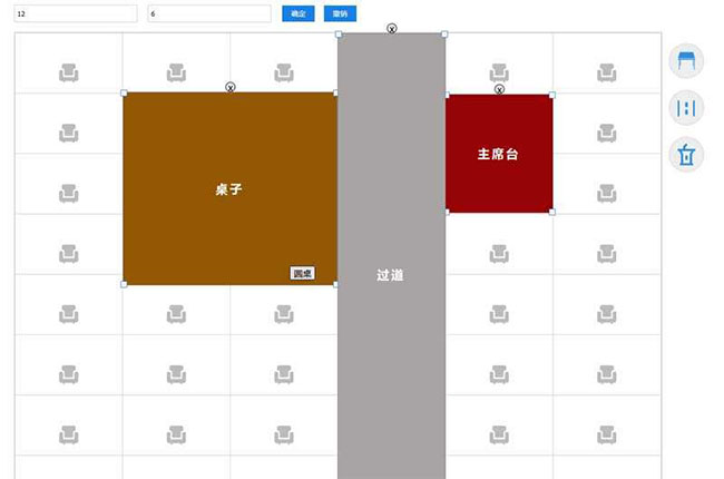 JS交互式办公室座位排座代码是一款自定义设置座位行数和列数,进行座位填充,桌子,过道,主席台排列位置。