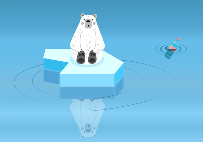 CSS3北极熊坐在冰面上特效是一款卡通湖面冰面上一只坐着的北极熊和一瓶可乐元素背景动画特效。