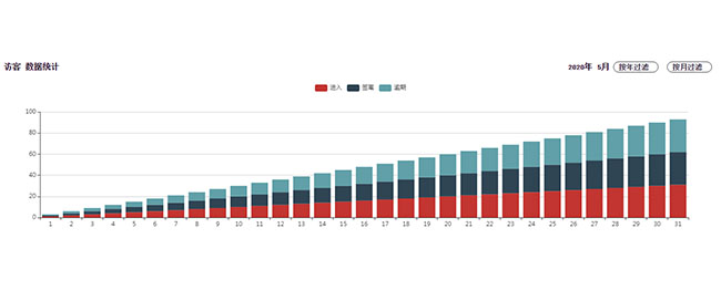 jQuery按年月柱状图表代码是一款jQuery基于Echarts图表插件实现的按年月分类的访客数据统计梯形图或柱状图分布图表实例代码。