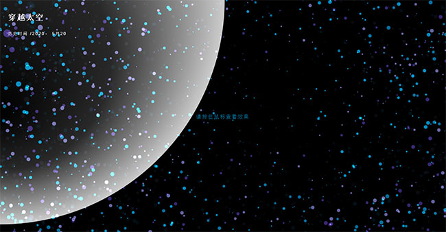 长按鼠标粒子穿越HTML5特效是一款酷炫的太空月球穿越粒子动画特效。