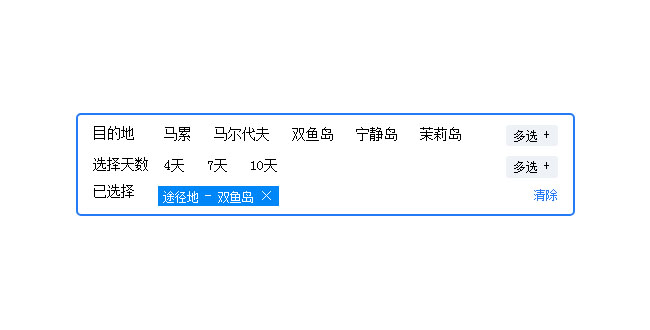vue.js旅游网站分类选择代码是一款基于vue.js实现的旅游目的地多条件分类菜单选择筛选代码。