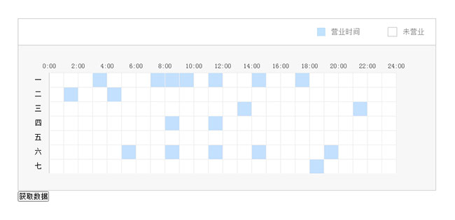 jQuery每天时间段选择代码是一款超市店铺营业时间表格代码。