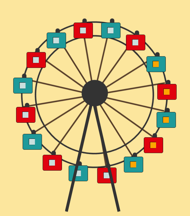 简易摩天轮旋转css3特效是一款基于gsap+css3绘制的卡通摩天轮旋转动画特效。