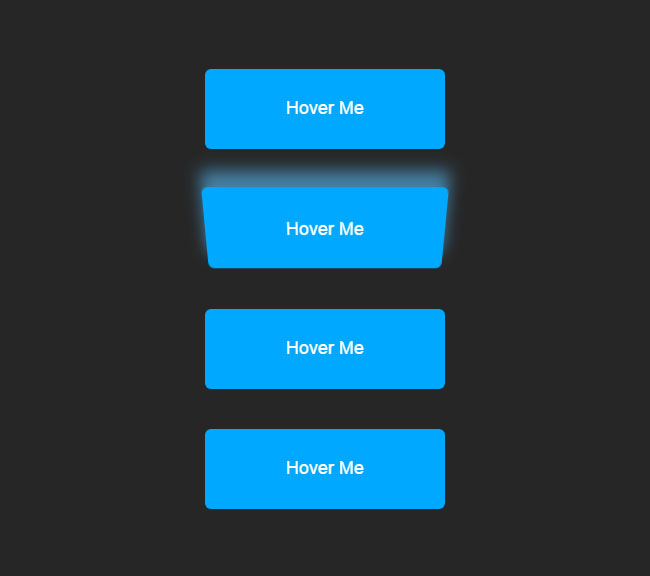 css3悬停按钮变形发光特效是一款基于css3 transform属性制作的四款不同方向按钮效果。