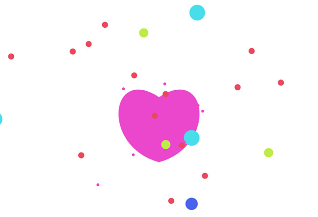 H5彩色心跳粒子动画特效是一款基于HTML5 Canvas绘制的变色爱心跳动,爱心溢出,圆点粒子爱心动画特效。